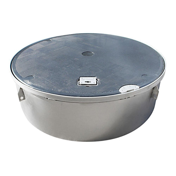 Esta tapa de alcantarilla está diseñada con un faldón de acero galvanizado y una construcción superior abovedada para evacuar el agua y evitar su acumulación. También viene con una tapa para facilitar el acceso. La tapa está equipada con dos asas dobles de acero inoxidable, una con resorte y otra con llave, para facilitar su manejo.