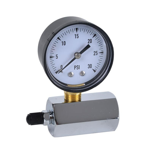 Con una conexión de tubería de cuerpo de prueba hexagonal cromado FNPT de 3/4", este manómetro garantiza una conexión segura y sin fugas. La cara de plástico de 2" proporciona mediciones claras y fáciles de leer, lo que le permite controlar la presión con precisión. El manómetro también incluye una válvula schrader de 1/8" para mayor comodidad.